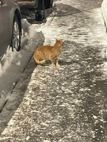 В подъезде чья-то кошка, похоже беременная. Похожа на абиссинскую.