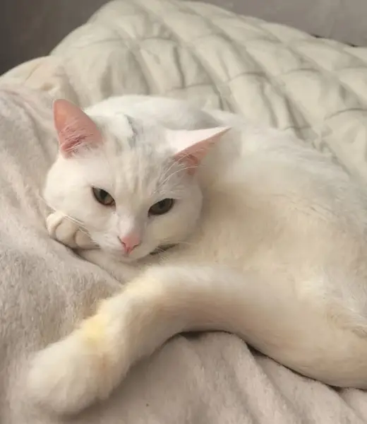Найдена молодая кошечка (предположительно год), вся белая. Домашняя, людей не боится, мурчит, очень ласковая. Здоровая, зубки хорошие. Глаза разного цвета - один голубой, другой желтый. Найдена напротив 2-го подъезда Новопетровская, 3. Предположительно на улице несколько дней, возможно из этого же дома (может быть выпрыгнула из окна). Хозяева, отзовитесь!