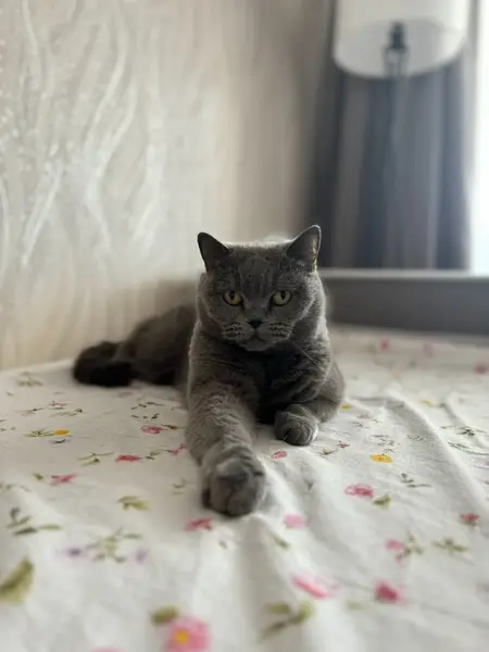 Питомец был в подъезде жилого дома, домашний, ласковый кот(кошка), порода британская короткошёрстная. Серый окрас, ухоженный кот, но к сожалению без ошейника