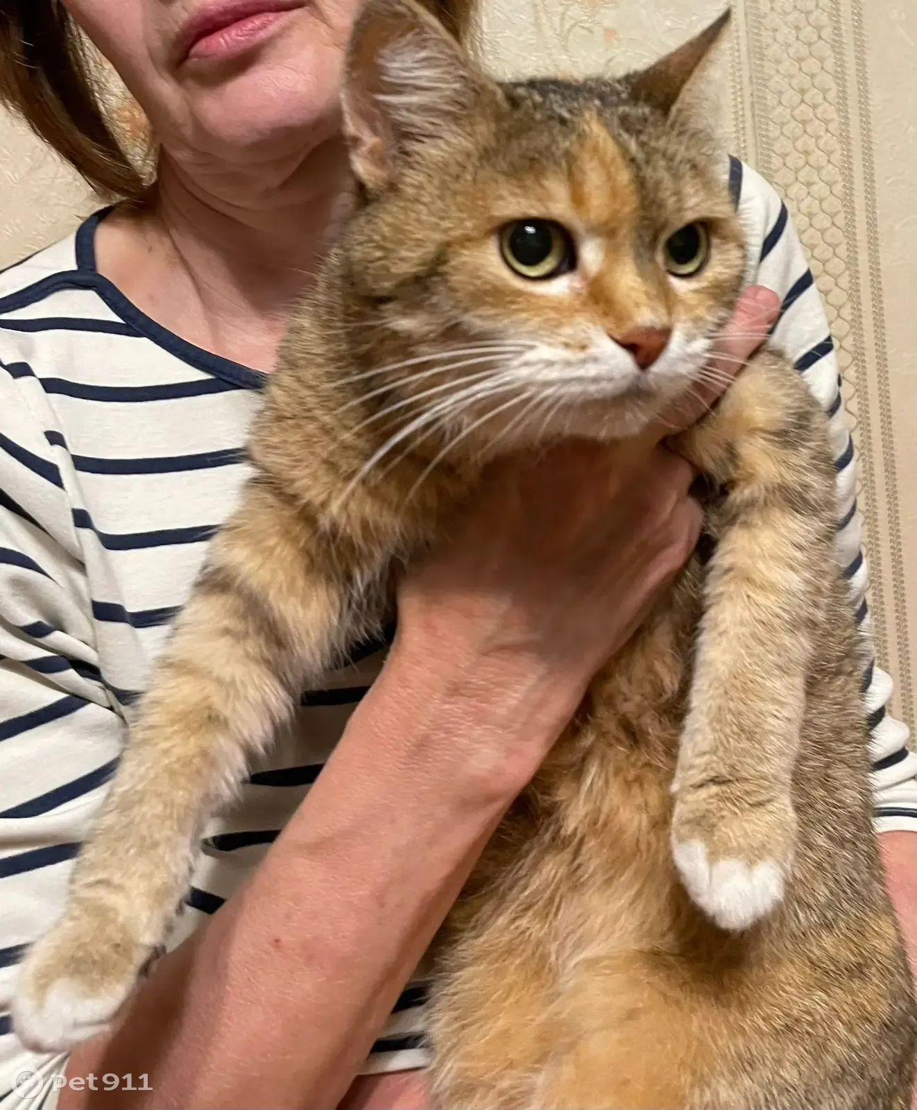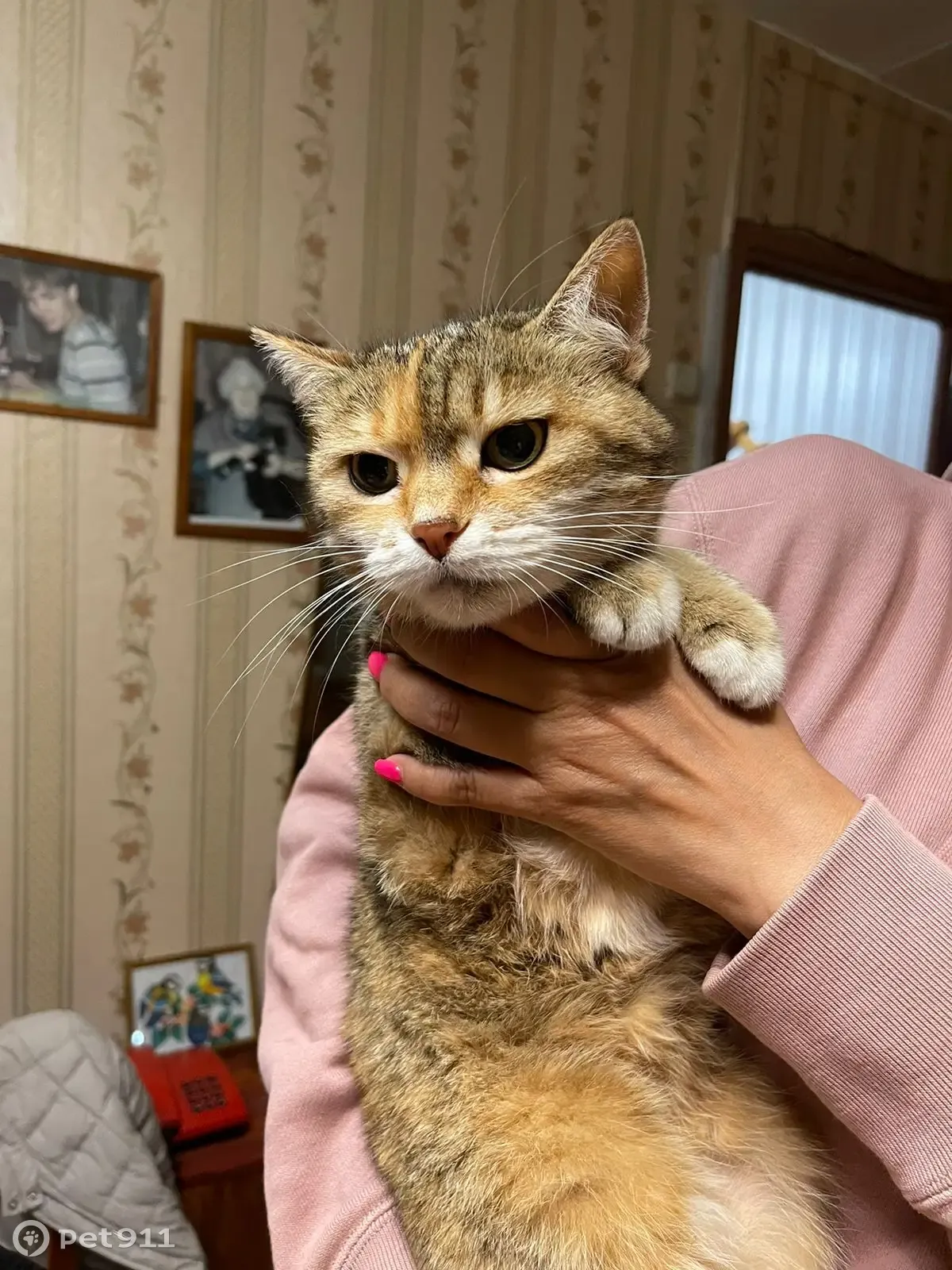 Найдена кошечка , спокойная, молодая, метис или шотландская прямоухая ( предположительно) очень добродушного характера, пестрая. Сидела под дождем на скамейке возле черкизовского пруда, дрожала от холода или страха. Очень контактная. Не боится собаки.
