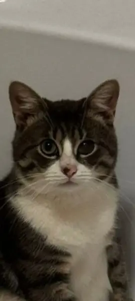 Нашли маленькую кошечку, девочка, окрас белый с серым и серыми полосками.(на вид не больше года) Сидели на скамейке и подбежала к нам, взяли к себе на передержку, надеемся Нати её хозяев или если их нету, то новых. Себе оставить не можем, уже есть коты, к лотку она приучена, ласковая и игривая.