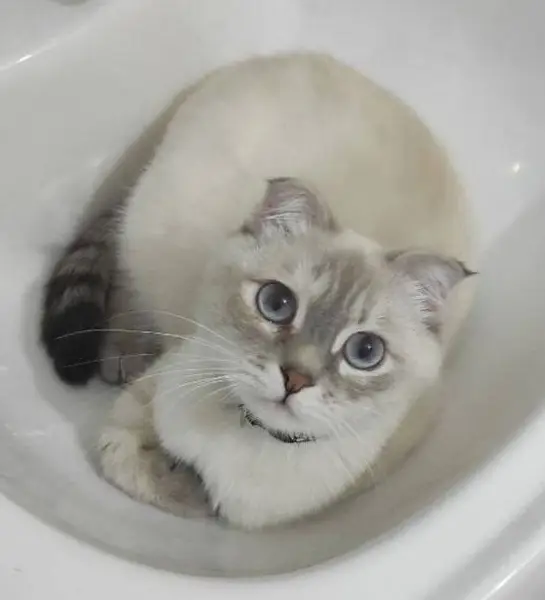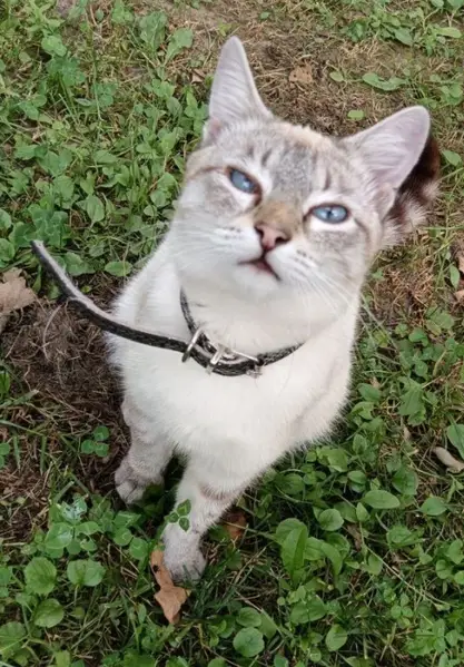 В районе Марьино найдена кошка (возможно, кот). Второй день встречаю кошку по пути домой. Кошка домашняя, взволнована и напугана, но, при этом, доверчивая и человекоориентированная. Окрас похож на сиамскую, хвостик и лапки серые полосатые, глаза - голубые Голодная, съедает 3 пакетика корма взахлёб. Мяукает, жалуется. Очень надеюсь, что найдется хозяин или новая семья.