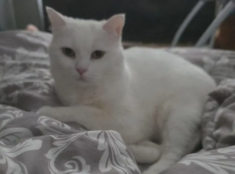 Найден белый кот/кошка с большими голубыми глазами. Рук не боится, ласковый. Нашла в подъезде.