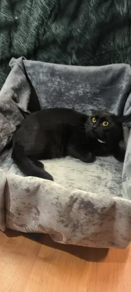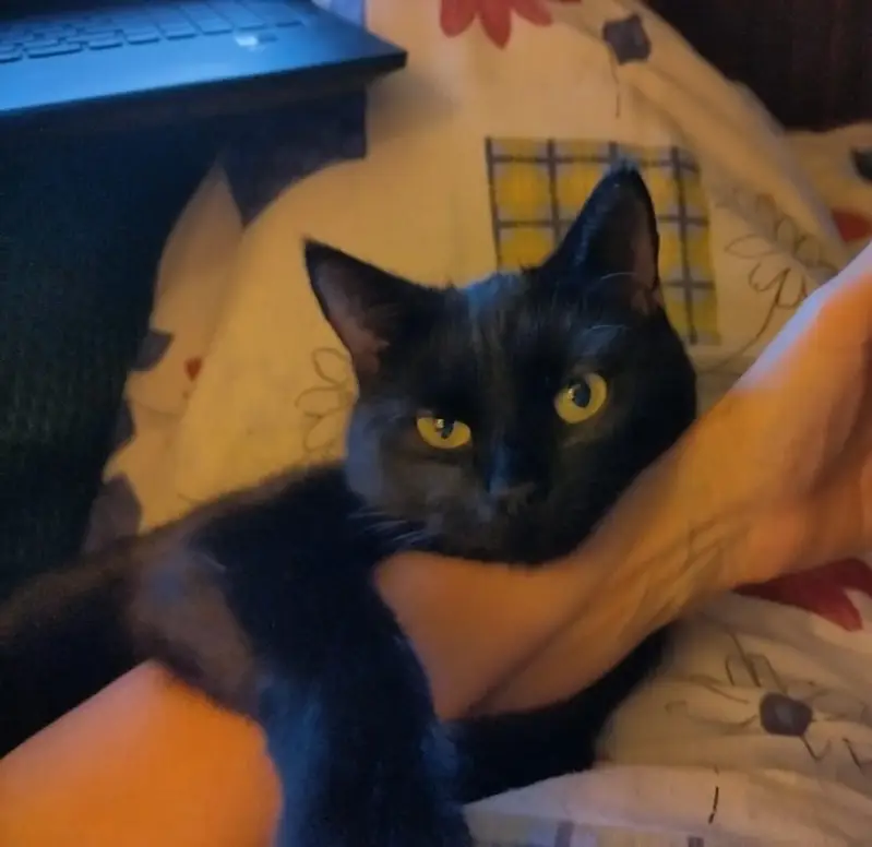 Молодая кошечка, девочка, возраст 6-8 месяцев. Окрас чёрный, шерсть короткая. Явно домашняя. Ручная и очень ласковая. Написали в домовых чатах в окрестностях, но никто не отозвался пока.