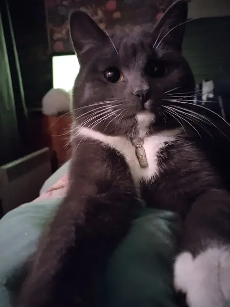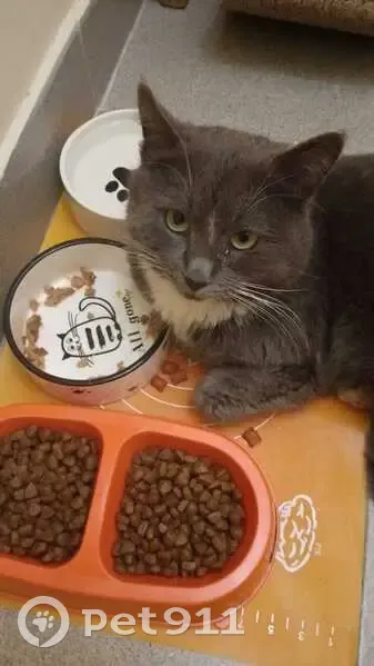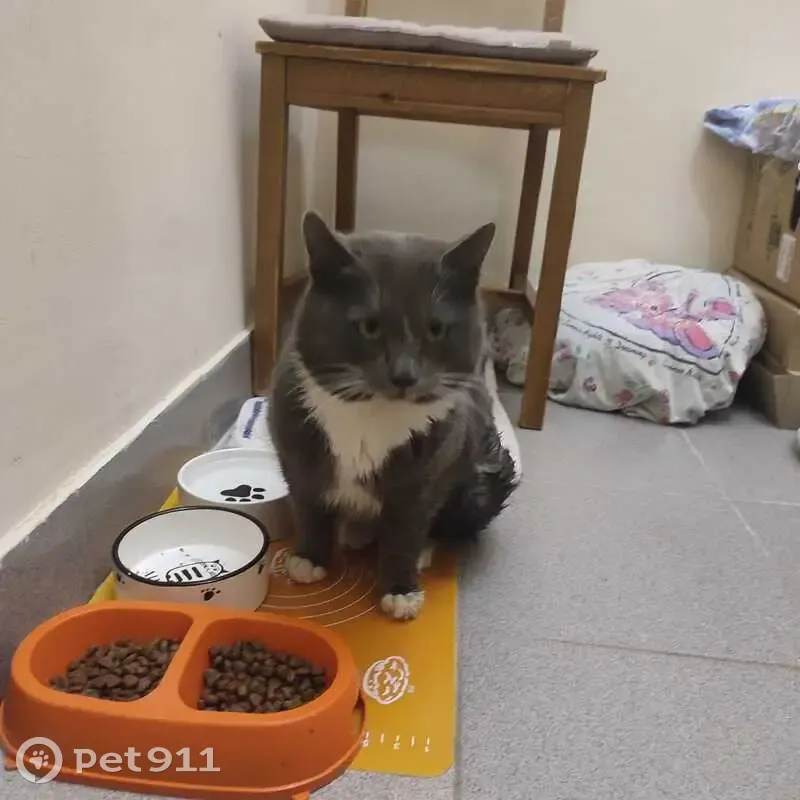 Найдет кот. Серый в белой грудкой и перчаточками. Хромает на заднюю лапку (возможно выпал из окна). Был найден на строительной площадке, видимо прибился к другим диким кошкам.