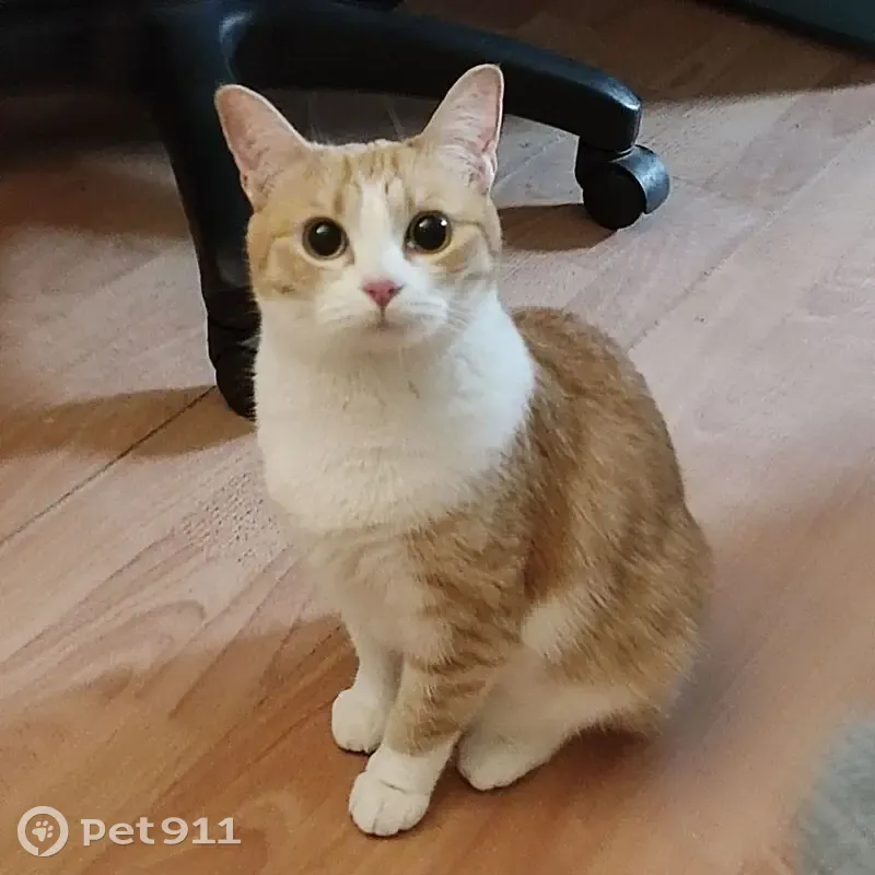 Кошка рыжая белые лапы и живот . Домашняя к лотку приучена. Не агрессивная. На вид года три.
