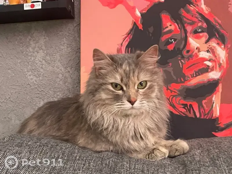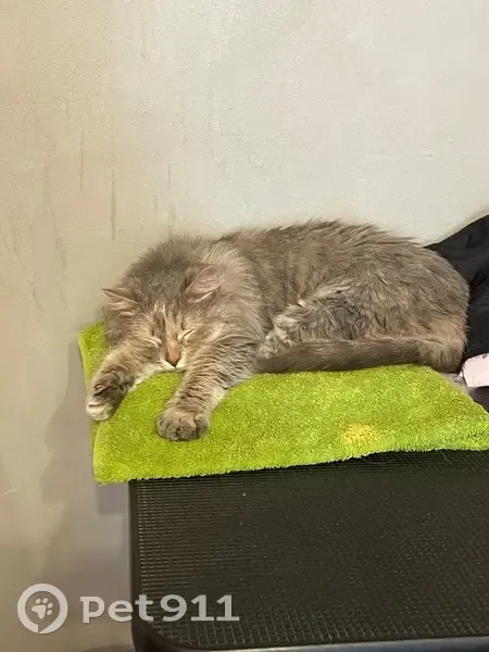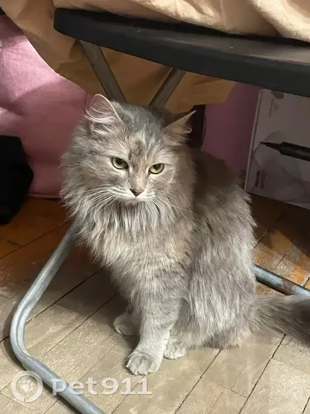 Нашли кошку в электричке по направлению Ярославский вокзал - Фрязино пассажирское. Дымчатая, зеленые глаза. Молоденькая, примерно около 2-3 лет