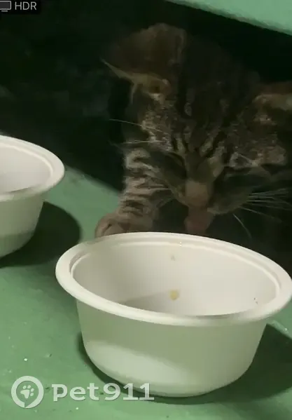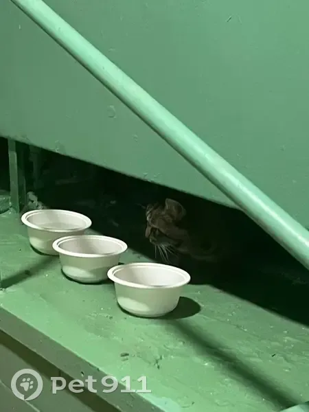 Очень пугливый, не удалось выманить полностью. Все то, что на фото - единственное, что удалось посмотреть Говорят, что уже неделю сидит в этом подъезде