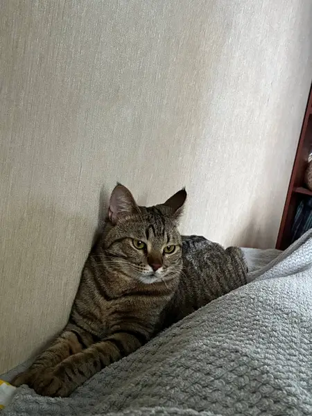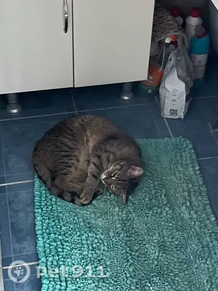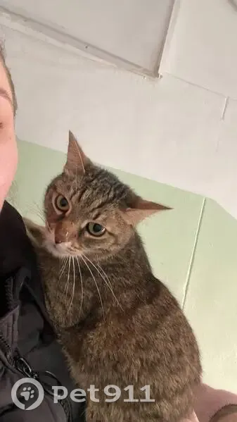 Найдена в подъезде Окрас вроде обычный серенький. Кот ласковый, кастрирован, примерно 3 года.