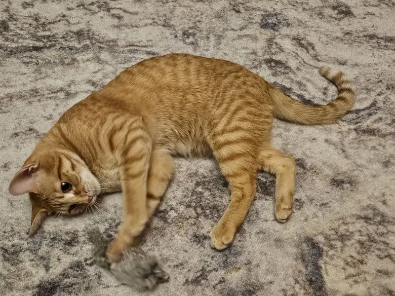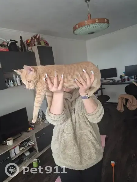 Кажется, кот домашний. Окрас кремово-рыжий, полосатый. Даётся в руки, на улице был сильно напуган.