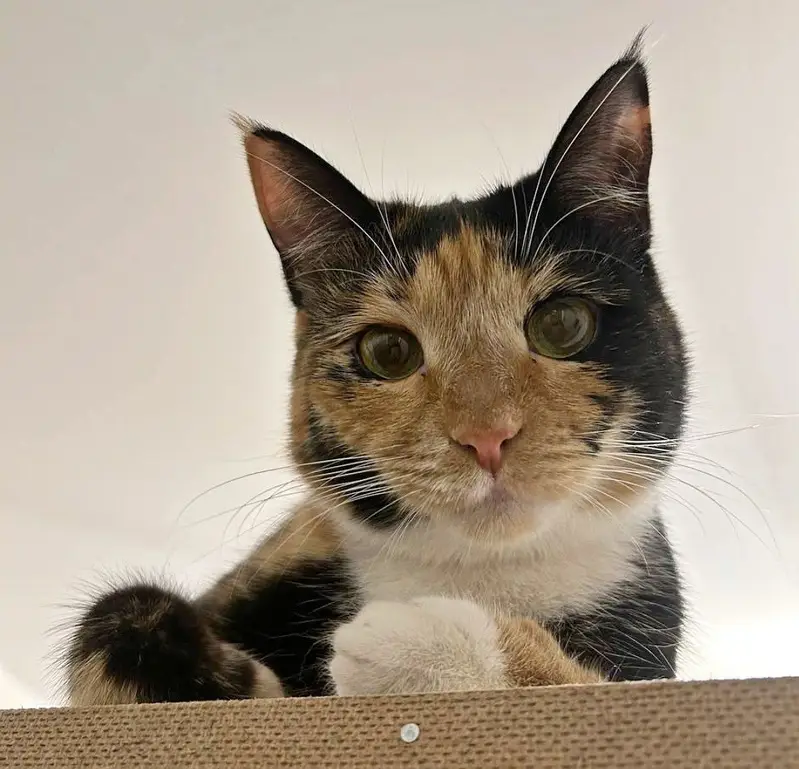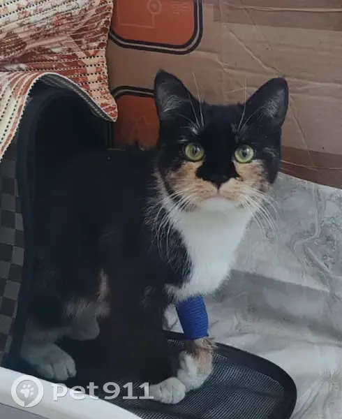 Трехцветная кошка. Ярко выраженный, легкоузнаваемый черный окрас носа. Кошка спокойна, не много пугливая. Сидела на скамейке у дома Анадырский, 69, в районе платформы Лось. Появилась примерно в последнюю неделю марта. Поймана 13.04.2025, обработана от блох и глистов, пока на балконе (балкон застеклен), на карантине. Дома своя кошка есть, долго держать не смогу.