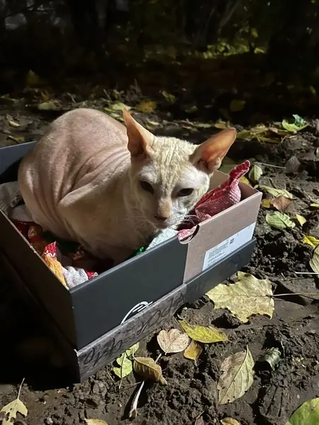 Мальчик, метис сфинкс с эльфом, короткошерстный, рыже белого окраса, кастрат,на шее белый ошейник