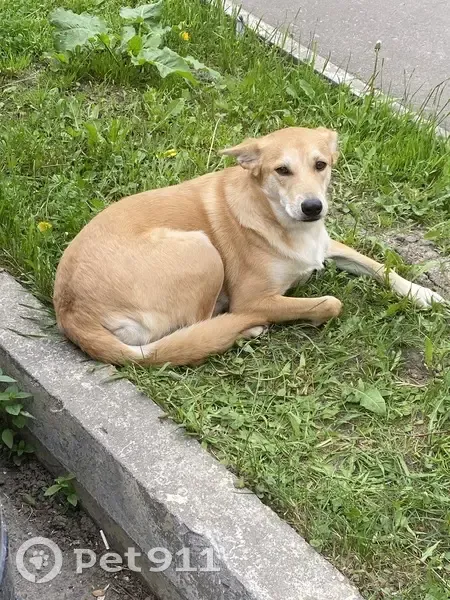 Собака с утра сидит на улице и смотрит на подъезд в ожидании хозяина. Спокойная. Никуда не уходит.