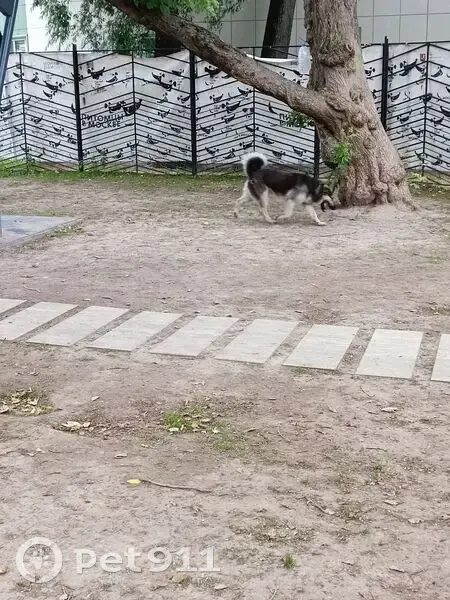 Собака гуляла на улице, завели на площадку для собак. Коричневый ошейник широкий. Милая и дружелюбная, но исхудавшая, пить не стала. Позвонили в местное управление, её заберут. Если это ваша собака , то позвоните в управу этого района.