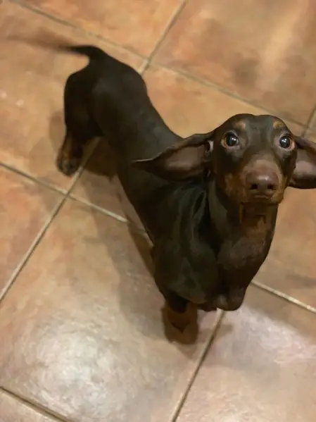 Москва. Район Перово. Нашла на Перовской слободе таксу, девочка, карлик. Красный ошейник, адресника нет. Час поискала хозяев - не нашла. Вдруг кто-то знает. Возможно живет по адресу 2-я Владимирская 9г, 1 подъезд, по крайней мере она привела туда. Собака у меня, связаться со мной можно в любое время. 89777730024