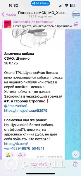 На Щукинской бегает собака, похожа на черного питбуля или стафа в серой шлейке - девочка., на адреснике кличка Дуся, не даёт себя поймать. Заскочила в уезжающий трамвай #15 и уехала в сторону Строгино.