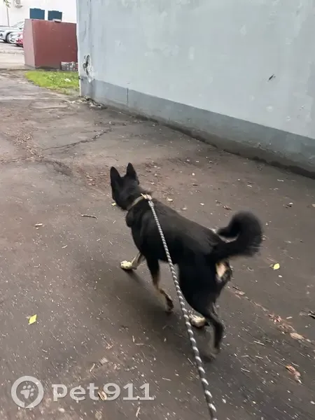 Молодой пес, черный окрас, коричневые брови, лапы, кончик хвоста белый. Был в ошейнике цвета хаки. В холке 70-80 см. Контактный. Знает команды «лапу», «рядом». Потерян, ищет глазами хозяина, очень внимательно смотрит на все проезжающие машины