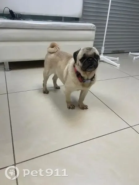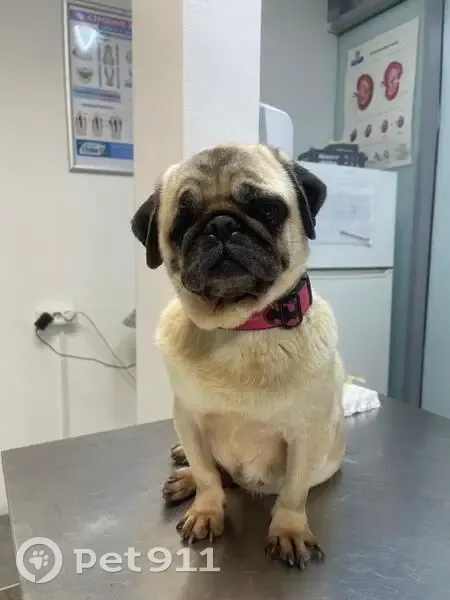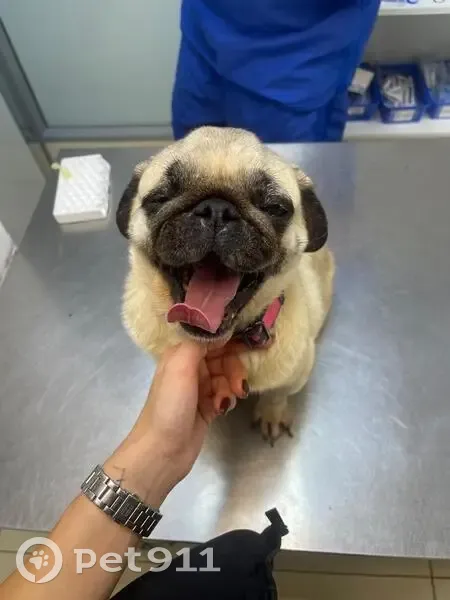Найден(а) собака мопс шоссе Народного Ополчения, рядом с домом №3, 06.09.2025. В 3:00 ночи найден мопс-девочка Приметы: Красный ошейник с рисунком Бэтмена Очень ласковая и добрая Один глаз Нет бейджика и нет чипа На пузе есть новообразования Ветеринар сказал, что ей примерно 7–9 лет Лёгкое обезвоживание, но в целом собака здорова Мария — 8 (905) 789-99-04