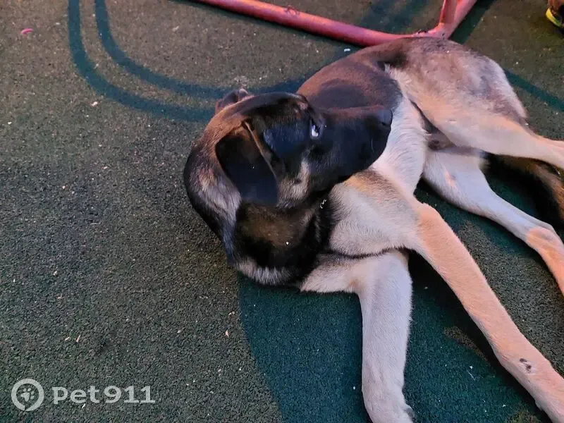 Чёрно-бежевый окрас, длинные уши, длинные лапы, выполняет команды: даёт лапу, приносит палку. Спокойный, ласковый пёс, любит детей, человекоориентированный, послушный.