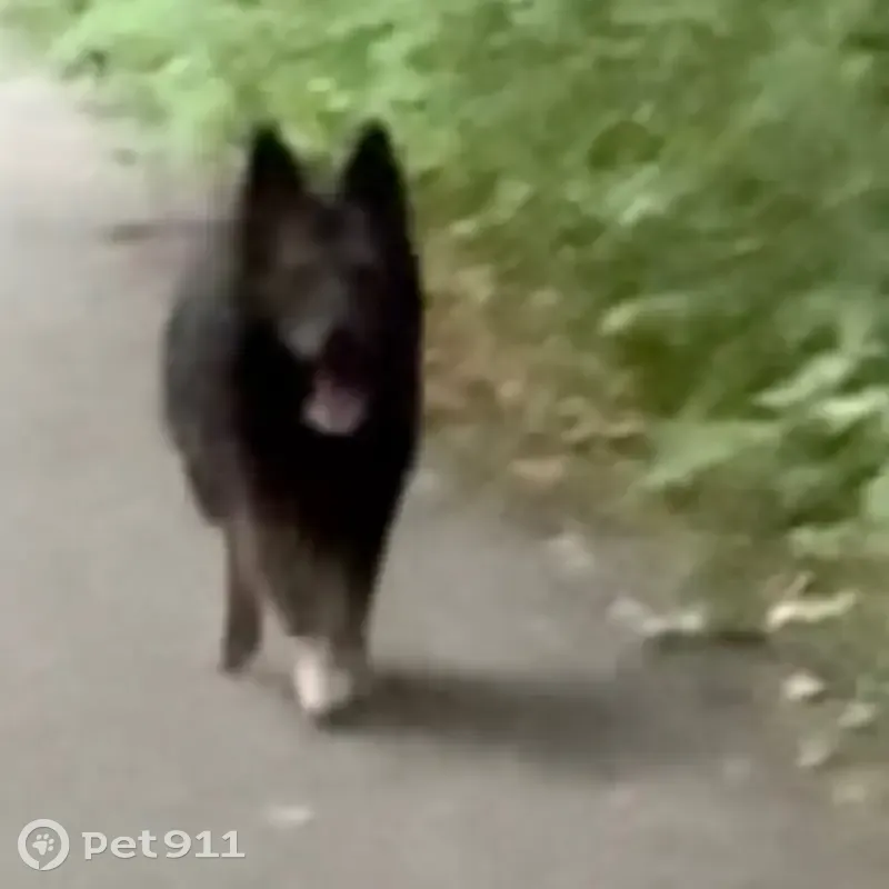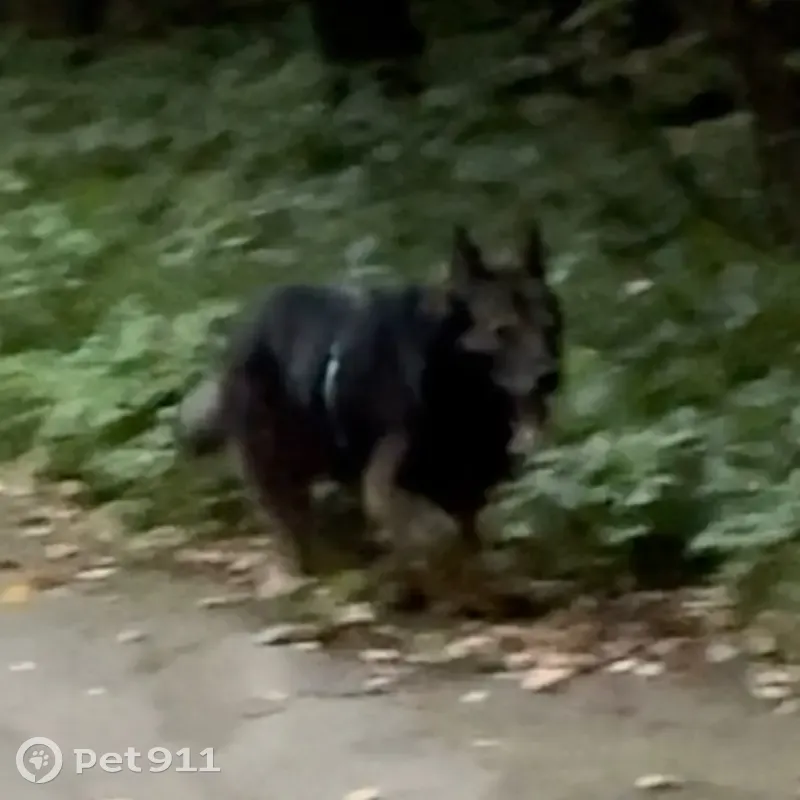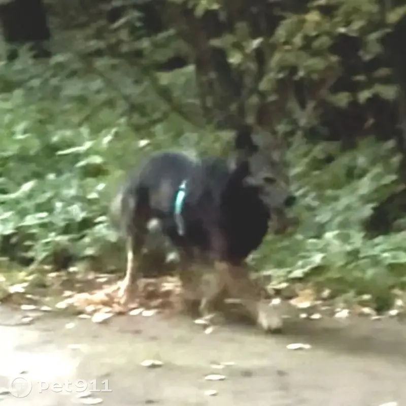 Собака бежала по лесной дорожке по направлению из леса, людей сторонится. Была в зеленой шлейке. Низкая коренастая. Фото сделаны из скриншотов видео. По необходимости видео смогу прислать в личку.