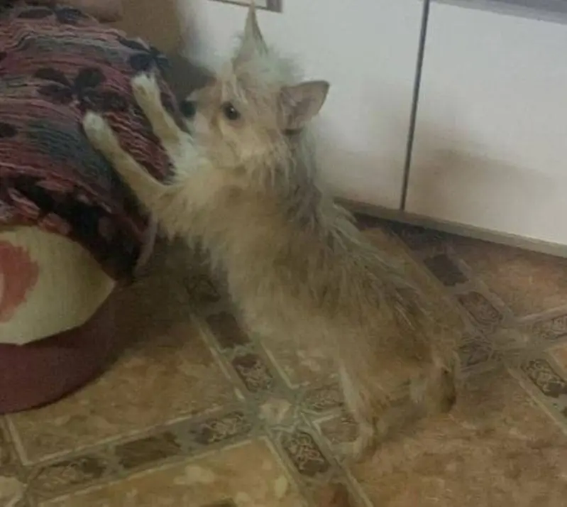 Был найден 11.09. Около 15:00 у метро Рязанский проспект, бегал кругами, с местности не убегал. Насколько известно первый раз был замечен еще утром. Весит около 3кг. На правой стороне рта нет несколько зубов , был найден в шлейке серебристого цвета( на фото). Клейма, чипа нет. Кастрированный , возрастной