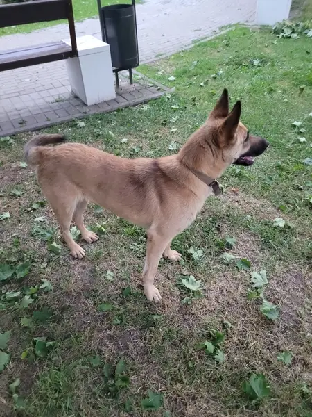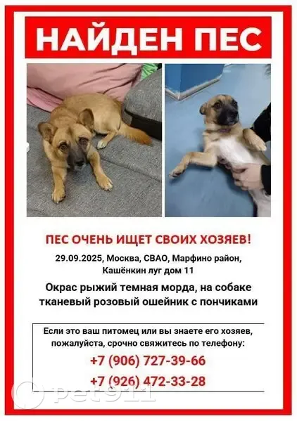 Окрас рыжий, темная мордочка, кобель, в тканевом разноцветном ошейнике с пончиками. Пес очень добрый и спокойный. Большая просьба, если от пса всё таки "избавились", пожалуйста, сообщите любым доступным способом!