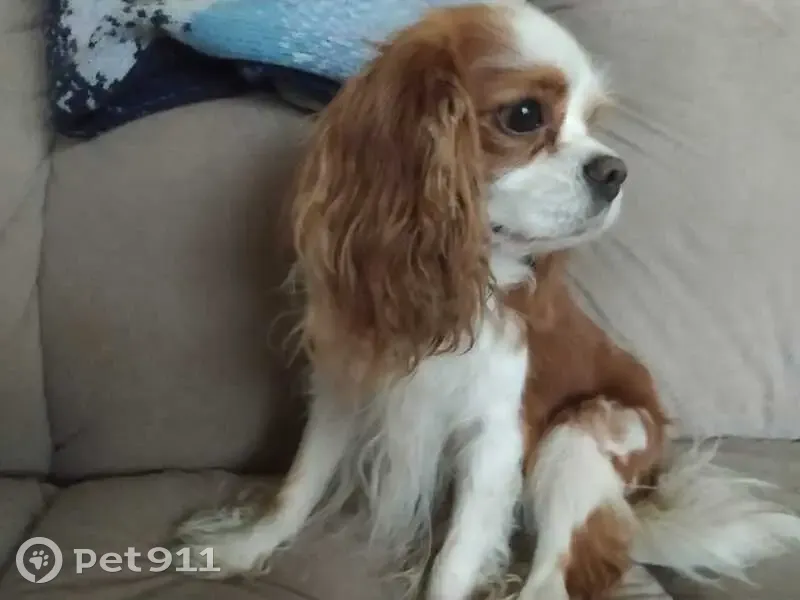 Утром 06.10.2025года около 9:00, на Красностуденческом проезде города Москвы ( САО, Тимирязевский район), найден кобель Кавалер-кинг-чарльз-спаниель, окрас блейнхейм (рыже-белый) Дружелюбный, общительный. Есть клеймо.