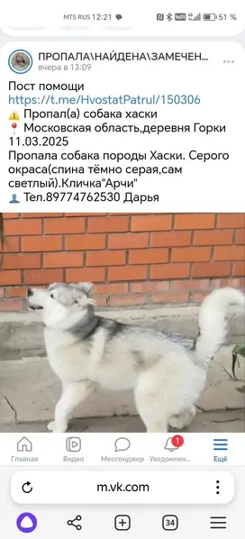 СВАО, Ростокино/ Останкинский улица Сергея Эйзенштейна д.6 Найдена собака 18.10.25 Пока что стоят с ней на улице. Придержать и долго с ней находиться не могут! СРОЧНО ИЩЕМ ХОЗЯИНА ️ Пес мальчик, похож на хаски. В текстильном черном ошейнике. Хромал по дороге перед машинами на улице Бориса Галушкина. 89153391241 https://t. Me/dogs_poisk/9917