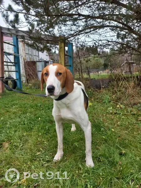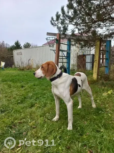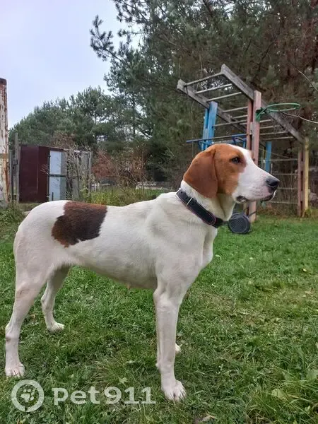 Гончая пегая, ошейника не было, чипа нет, девочка. Пришла 03.11, сейчас у нас, ищем старых хозяев