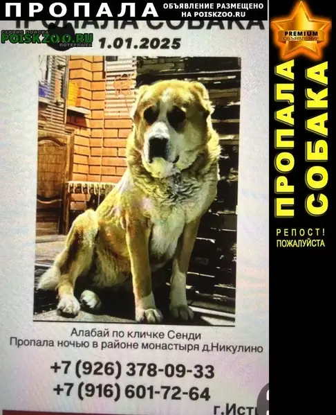 Сегодня 11.11.25 в 12:00, был замечен такой пёсик, похож на алабая. Не однократно видели его без хозяина , бродит один. Очень голодный и худой. Есть ошейник темного цвета. Возможно чей-то потеряшка. Местные не признают.