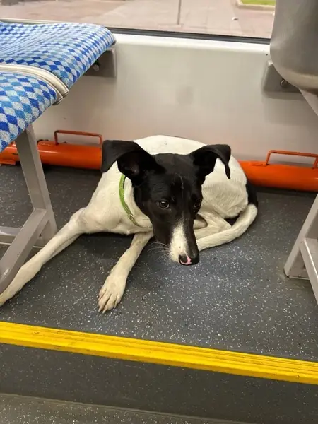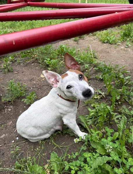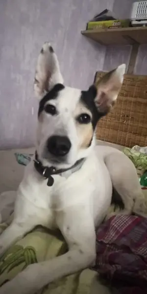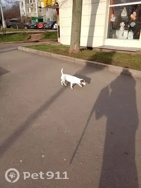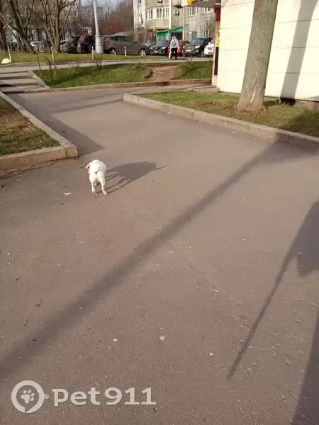 По улице наметкина бегает собака без ошейника, маленькая,белая с пятнами, девочка, зашла в Дикси по ул наметкина, 9. Далее из вида упустила