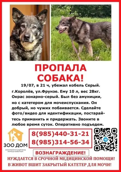 Найдена собака серого цвета, западно-сибирская лайка, сука. Чип не обнаружен Не агрессивная. Бегала несколько дней по Лианозово, в начале была в темном ошейнике, потом он пропал. Срочно ищем хозяев.