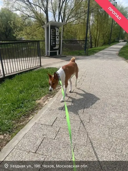 Бассенджи Послушный Есть бежевый ошейник каскад Синий дождевик