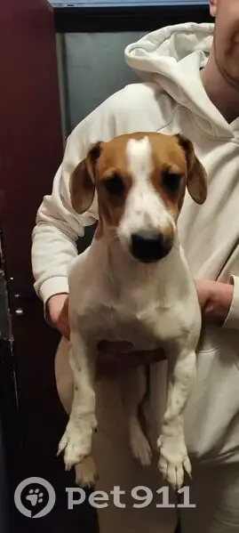 Найдена собака, девочка, парода джек рассол, молодая, до года, цвет белая с коричневыми пятнами, очень энергичная, есть чип, информации на нем нет, ошейника тоже не было, звонить по телефону 89001517774