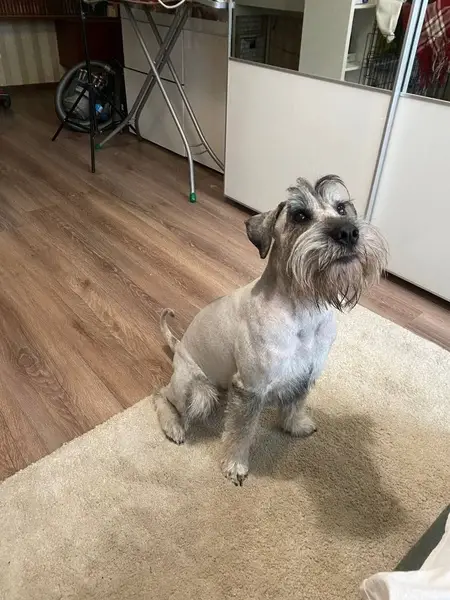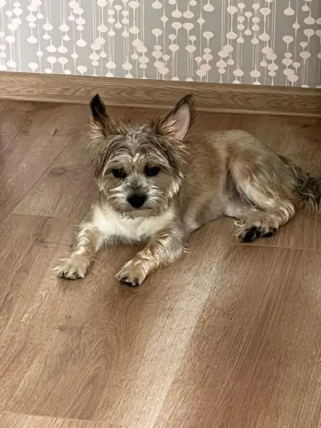 Черная, ухоженая, очень ласковая. Кончик хвоста белый, белые носочки Собака в возрасте, глаза побелевшие, но зубы и уши в хорошем состоянии. Была найдена привязанной к дереву в неприметном месте на парковке, была в красном ошейнике с красным поводком. Собака провела на морозе не менее часа, я посадил ее в машину погреться, прошло еще около часа, за это время никто так и не пришел за собакой