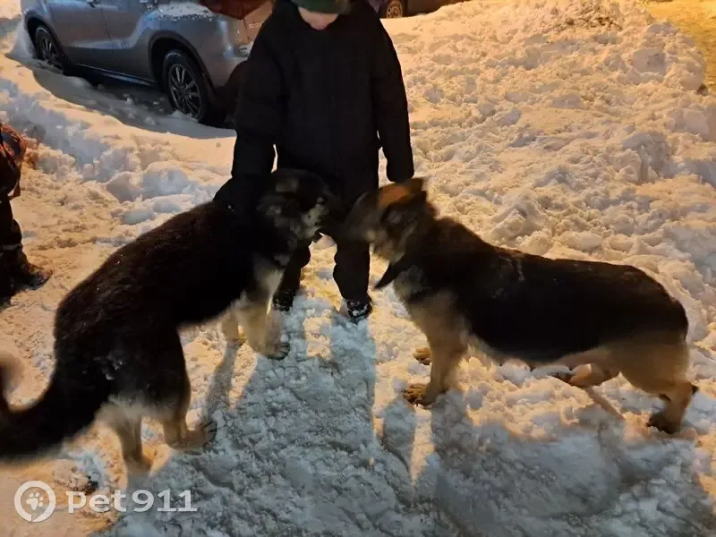 Москва, Гольяново. Найдено две собаки овчарки, бегали по району с утра, метис немецкой овчарки мальчик и кормящая сука немецкая овчарка, кобель очень привязан к девочке