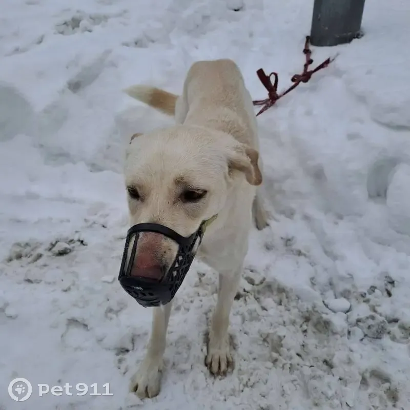 Найдена собака. Была привязана к забору дворниками, когда разгребали снег. Собака палевого окраса, была в наморднике и с поводком Бабушка временно согласилась передержать, но ненадолго в связи возрастом. Хозяевам обращаться ПО НОМЕРУ - 89268152544 Галина