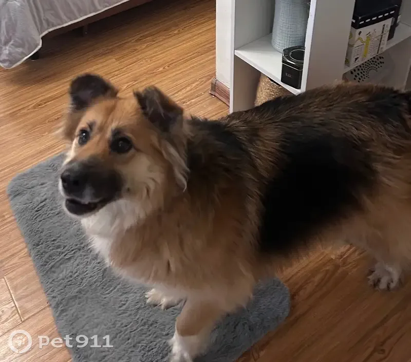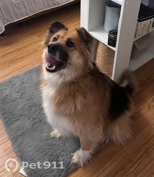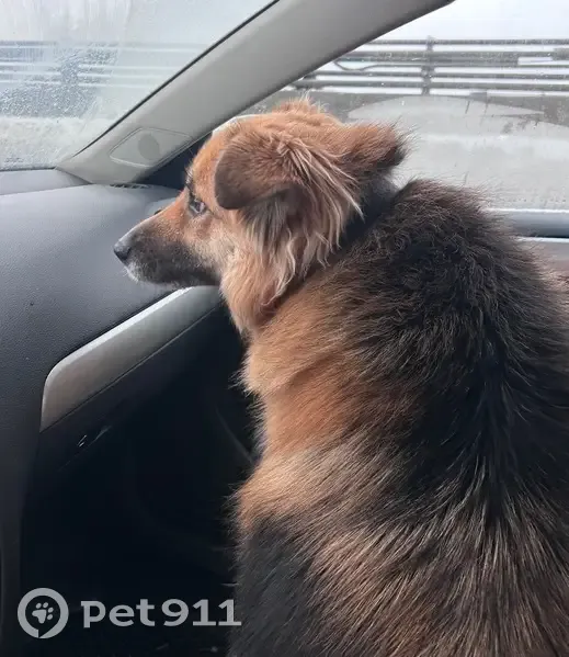 Собака бежала по Дмитровскому шоссе, добрая, к людям хорошо относится. Пушистая, размер средний. Скорее всего жила загородом.