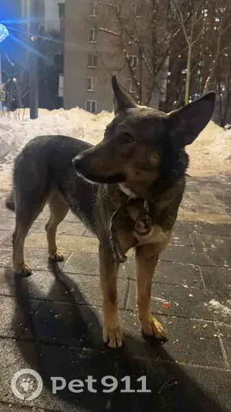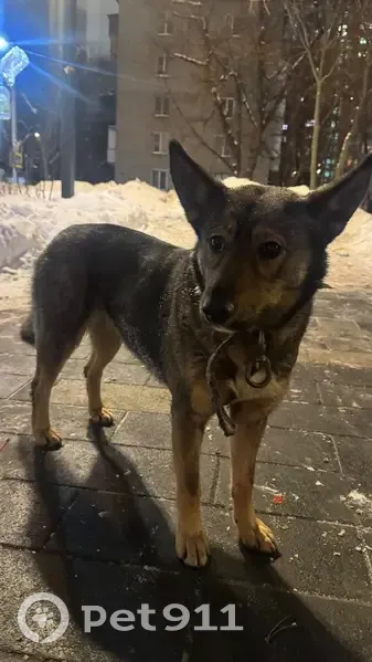 Бегает по району. Явно кого-то ищет Чуть пугливая (скорее всего девочка) С ошейником