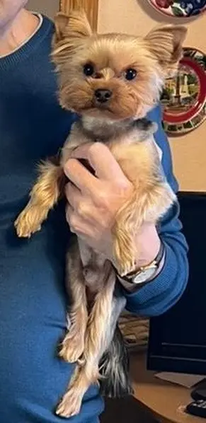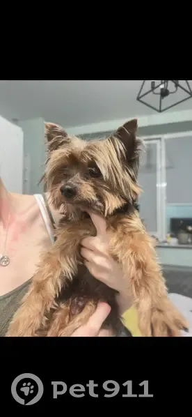 Собаку нашли в синем комбинезоне, сверху была надета зеленая шлейка, собаку забрали в м.Бабушкинская у двух взрослых мужчин. Которые предложили мне забрать собаку, так как сами стали обладателями этой собаки 10 минут назад. По их словам, какая-то девушка(они не знают, хозяйка это, или нет) предложила им оставить собаку себе и ушла. Порода Йорк, мальчик Сейчас находится у нас