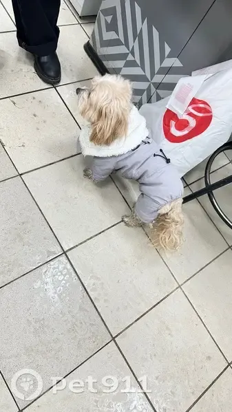 Мальчик два часа бегает по улице. Видела как он переходил дорогу от Флотилии. Собака находится в Пятерочке флотская, 50. Девочки в магазине сказали, что могут на ночь к себе забрать