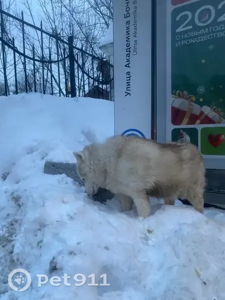 Найдена собака, улица Академика Бочвара, 13, Москва - белая с коричневым