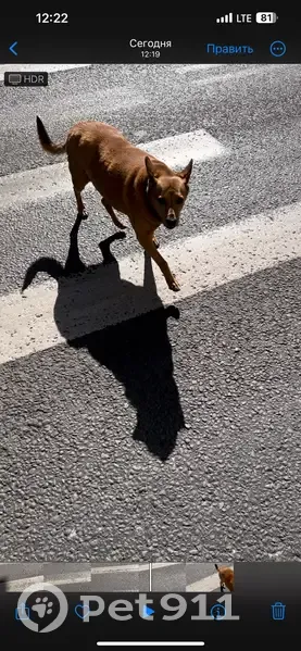 Рыжая собака, ошейник присутствует, потеряшка. Перебегала большую дорогу. Побежала в сторону Красносельской от Комсомольской.