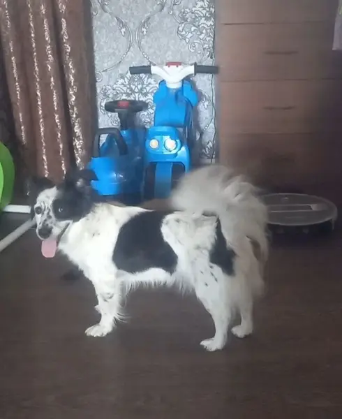 Собака без хозяина бегает по двору , к людям не подходит, на свист и сюсюкание отзывается, но боится. На шее ошейник с круглым медальоном серебристого цвета
