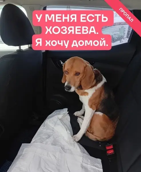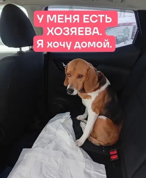 Найден бигль с шлейкой возле магазина "Метро" в Строгино