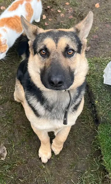 Около станции Немчиновка Белорусской ж.д. ходит кобель овчарки в ошейнике без номера телефона. Сейчас около дома 65 по ул. Амбулаторная. По возрасту сказать трудно. Ухожен, упитан. Клыки немного стерты. Пустить к себе не можем ( течная сука).