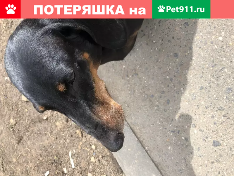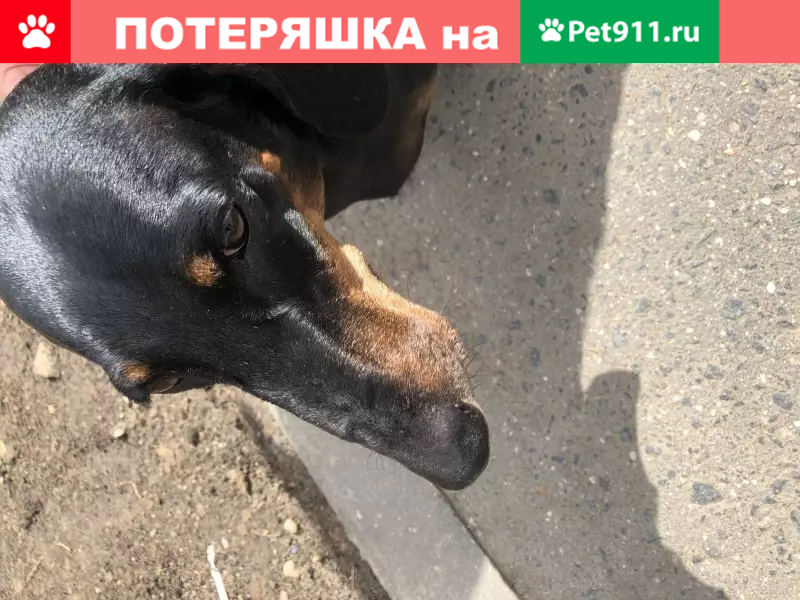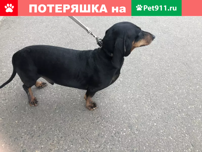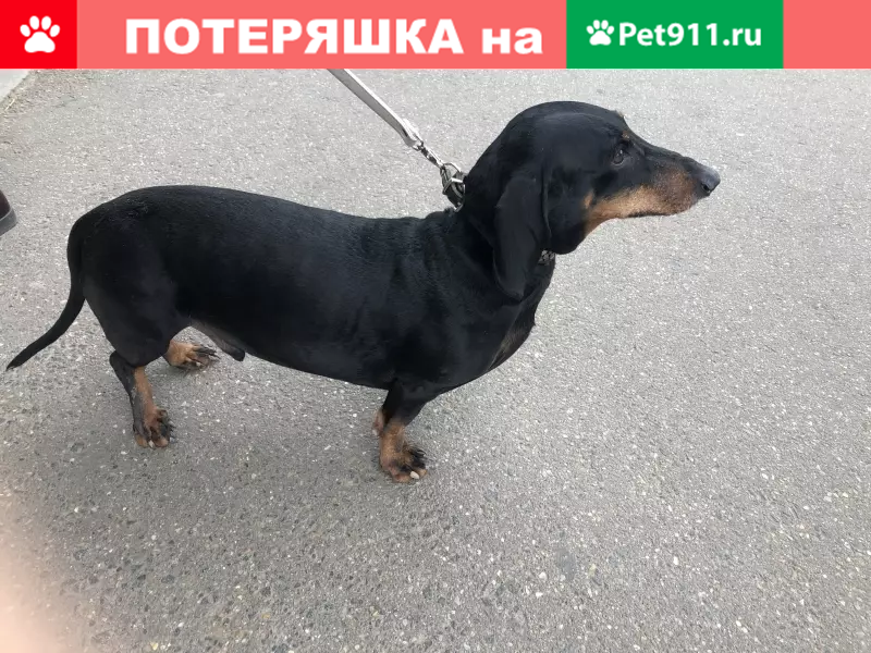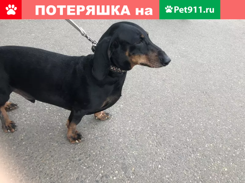 На станции МЦК Ростокино найдена такса, кобель, на вид лет 6-7, в кожаном ошейнике, бирок, чипа нет. Собаку временно забрали. Пес контактный и не агрессивный, прицепили на ремень от сумки, понимает команду рядом, не вырывался.