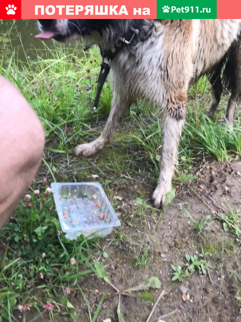 Пол, возраст не известен. С виду еще молод, меньше года. Найден в поселке Красный Воин, не далеко от поселка Менделеево, Солнечногорский р-н, Московская область. На собаке ошейник.
