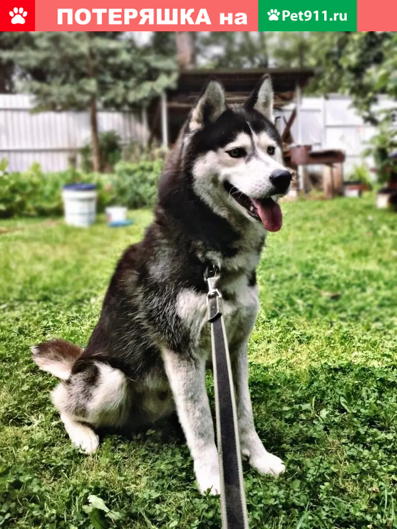 Мальчик хаски. Нашли в поселке Толстопальцево. Ранее его же видели на станции Толстопальцево. С ошейником, выглядит хорошо, доброжелательный. Возили к ветеренару: Чипа нет, около 2,5 лет.
