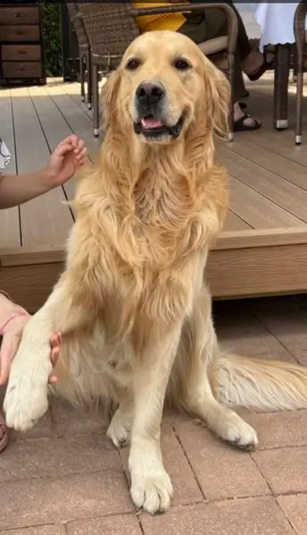 Собака карамельно-рыжего окраса, крупная с длинной шерстью. На шее красный ремешок. Первый раз была замечена на выходе из м. Мякинино, лежала и ждала. Сегодня уже шла по пешеходному мосту, рядом с Вегасом Мякинино, вглядывалась в прохожих.